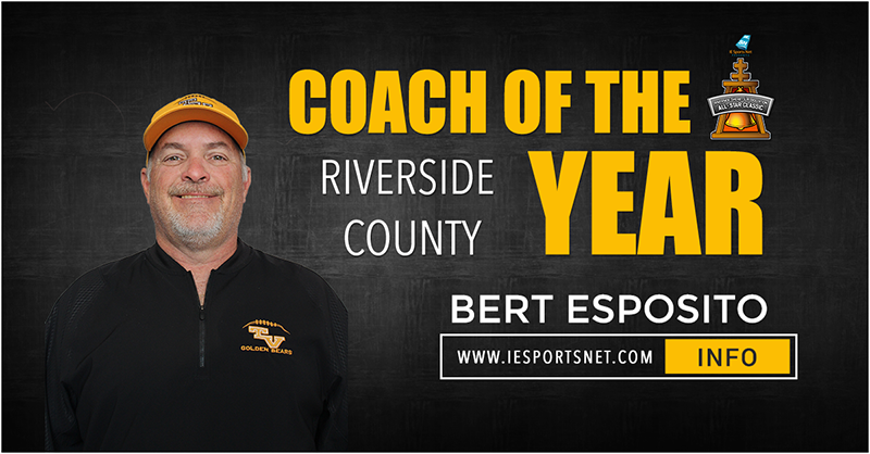 Riverside, Calif., — The Riverside County Coach of the Year is an annual Riverside Sheriffs’ Association award, presented by Fox Sports Radio AM1350! The winner is selected by votes from local media, administrators and coaches within Riverside county.