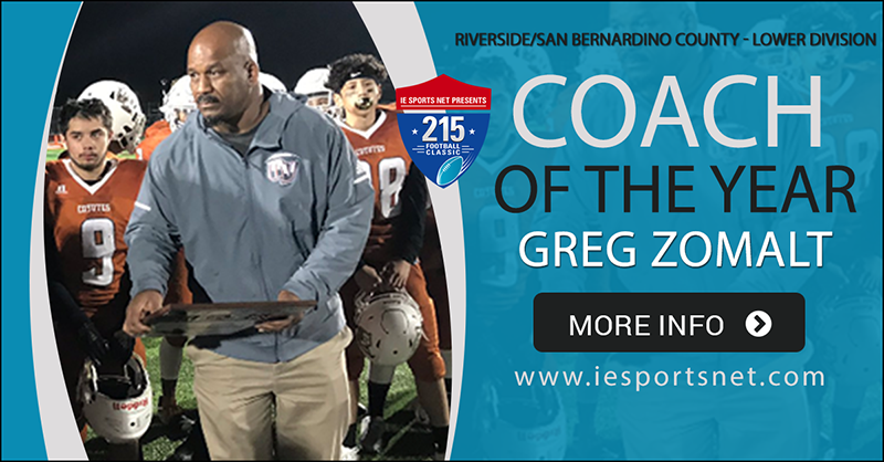 Riverside, Calif — The ‘215’ Riverside /San Bernardino, lower Division Coach of the Year is an annual Inland Valley Classic organization award, presented by Fox Sports Radio AM1350! The winner is selected by votes from both administrators and coaches within Riverside and San Bernardino county.