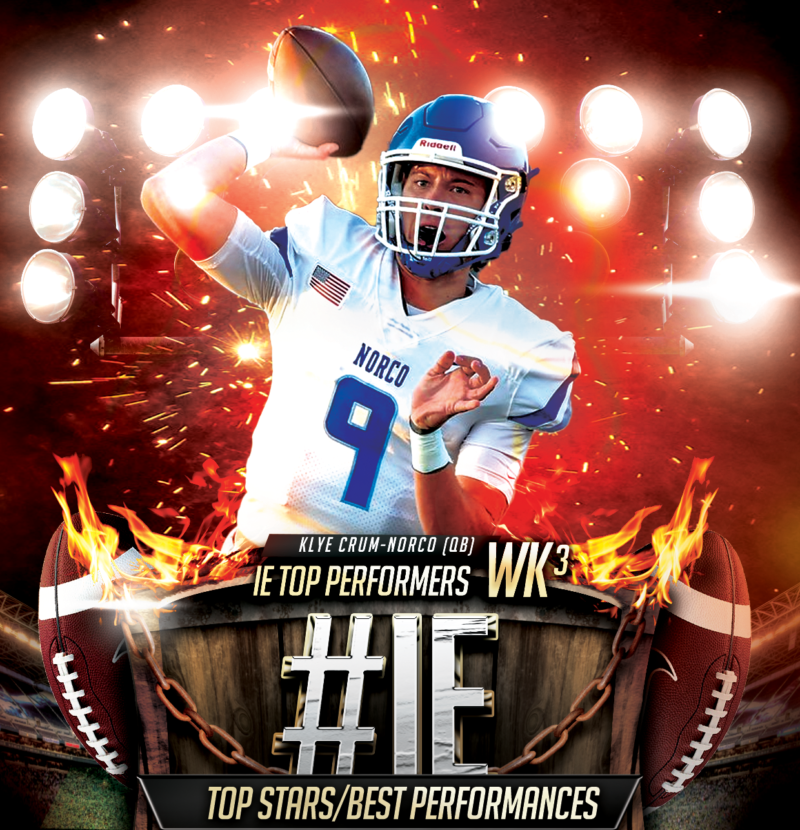 Kyle Crum, Norco QB: Had a huge night, completing 10 of 14 passes for 266 yards and 2 touchdowns, He also had 76 rushing yards and 3 touchdowns.
